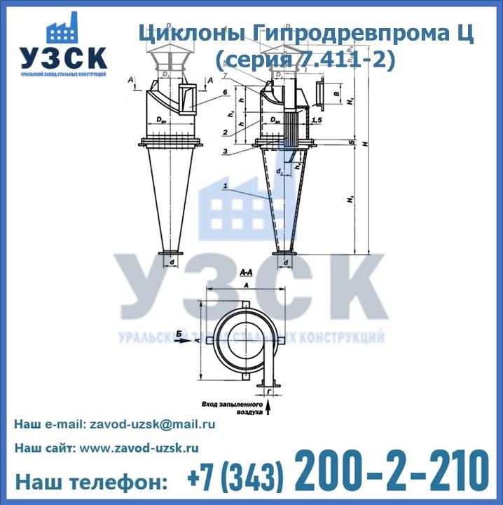 Циклоны Гипродревпрома Ц (серия 7.411-2) высокого качества можно купить в компании «УЗСК» в Пушкино. Наши специалисты предоставят всю необходимую информацию информацию и помогут с выбором модели циклона. Подробные технические характеристики, конструкцию, параметры, ассортимент и стоимость продукции можно также найти на сайте УЗСК.