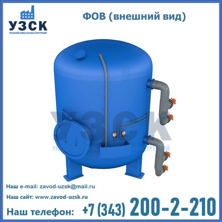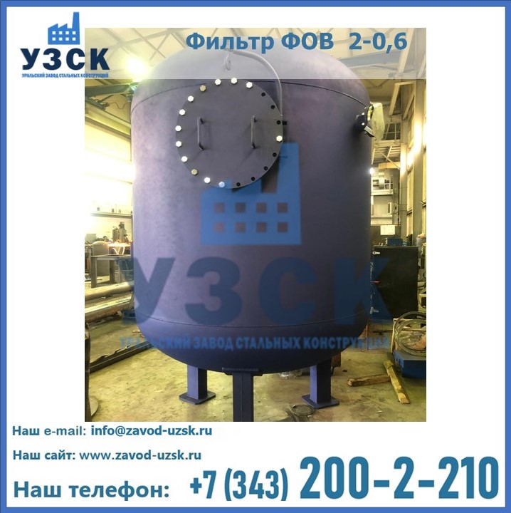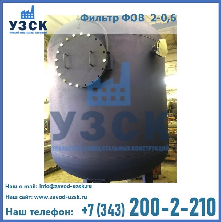 Удаление взвешенных веществ различного уровня дисперсности из рабочих жидкостей эффективно проводит фильтр осветлительный типа ФОВ (скорый или механический) — вертикально-цилиндрической формы установка, разработанная для систем водоподготовки различного класса. Оборудование представляет собой однокамерный агрегат для очистки воды рекомендованный для применения на станциях очистки стоков, в коммунальных котельных, на ТЭЦ, в промышленных отопительных системах и пр. Заказать производство ФОВ фильтров предлагает наш Уральский завод стальных конструкций в Пушкино. У нас можно купить фильтрационное оборудование различного класса и типа, в том числе фильтры ФОВ из нержавеющей стали.
