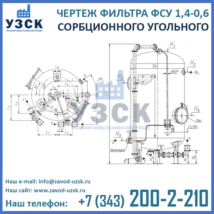 Если вы ищете фильтры ФСУ-1,4-0,6 в Пушкино от изготовителя, то Вы на правильном пути! Уральский завод стальных конструкций – непосредственный производитель сорбционных фильтров ФСУ, предлагающий самые выгодные цены на ФСУ-1.4-0.6 в Пушкино. По окончании процесса производства угольные фильтры проходят гидравлические испытания пробным давлением 0,9 МПа на аттестованном гидростенде, находящимся в собственности завода УЗСК. Мы гарантируем высокое качество выпускаемой продукции, и в этом уже убедились ведущие предприятия промышленного сектора России и стран ЕАЭС (см. раздел «Наши клиенты»).
