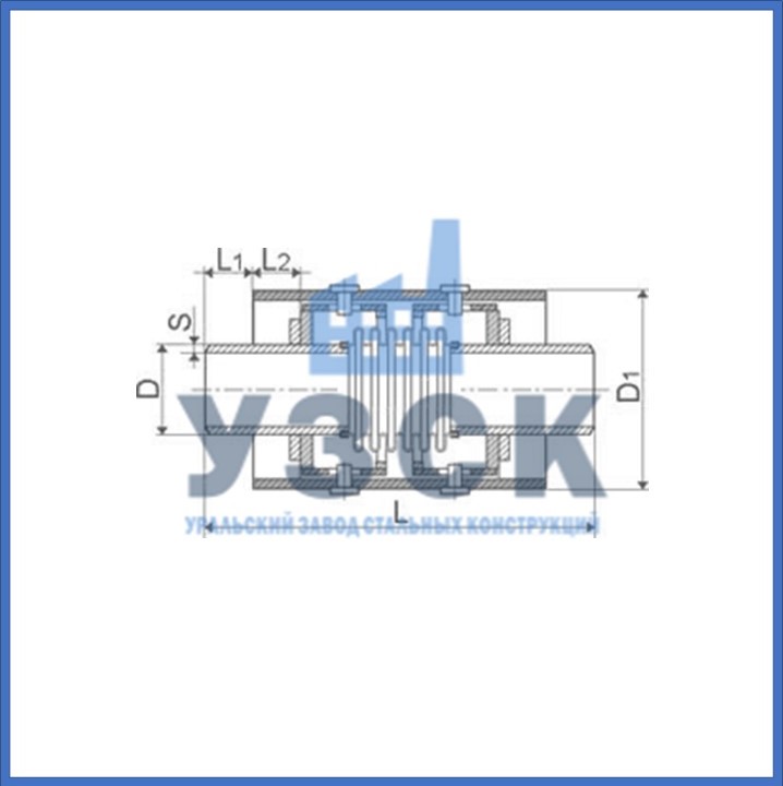 | Условное обозначение | Ду, мм | D, мм | D1, мм | S, мм | L, мм | L1, мм | L2, мм | Осевой ход, ±λ мм | Жесткость, Сλ, H/мм | Масса, G кг |